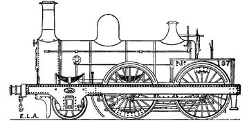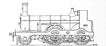 Over the years, locomotives appeared which had larger wheels and could also be used to haul passenger trains. In Great Britain in particular, the variant with the leading axle fixed in the frame was able to prove itself at higher speeds, since the tracks there were laid with great care. In addition, the cylinders were almost always on the inside and behind the leading axle and thus hardly transmitted any disturbing movements to the rails. Joseph Beattie began to introduce express locomotives with the LSWR in 1859, such as the Clyde class, which had seven foot wheels and hauled the heaviest and fastest express trains up until the 1870s.