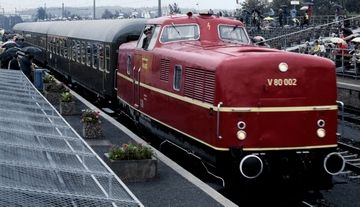 The top speed of initially 90 km/h was increased to 100 km/h in 1965 after the installation of an Indusi. In the seventies, some of the engines without piston cooling had to be replaced. The 1,350 hp engine of the V 10020 was sometimes used here, but it had to be de-rated to 1,100 hp when using the original transmission. By 2001, all locomotives were retired from Deutsche Bahn.