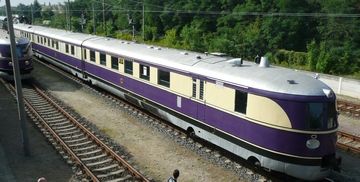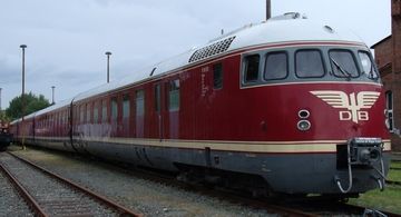 Strictly speaking, the chassis was not a matter of individual axles, but of “curve-controlled individual wheel chassis” (KERF). The train was made up of two three-part halves, each with a two-axle car body in the middle. This was followed by another car body on both sides, which only stood on one axle and still achieved stable driving characteristics thanks to the steered wheels. In the entire train, six of the eight axles were equipped with a traction motor, which was powered by a total of four light diesel generators, each with 338 kW. Using a flywheel storage device, part of the braking energy could be recovered and reused for the next acceleration phase.