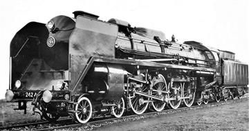 When the French State Railways were already planning the complete conversion to electric and diesel locomotives, André Chapelon designed an express steam locomotive with an output of 4,000 hp at the drawbar. As a basis, he used the Est 241-101, which had not made it into series production, and modified it accordingly. He converted the simple three-cylinder engine into a compound engine and provided the locomotive with streamlined steam pipes and a Kylchap exhaust system.