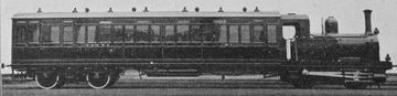 When steam railcars appeared in Great Britain in large numbers at the beginning of the century, James Manson of the G&SWR also followed the trend and had one steam railcar built in 1904. The vehicle consisted of a small, four-coupled tank locomotive and a conventional passenger carriage, which had only one bogie at the rear end. In theory the locomotive could have been detached from the carriage and used independently, however its water supplies were carried under the floor of the carriage.
