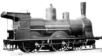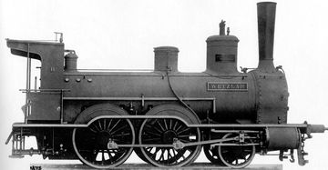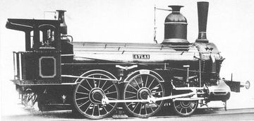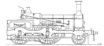 Over the years, locomotives appeared which had larger wheels and could also be used to haul passenger trains. In Great Britain in particular, the variant with the leading axle fixed in the frame was able to prove itself at higher speeds, since the tracks there were laid with great care. In addition, the cylinders were almost always on the inside and behind the leading axle and thus hardly transmitted any disturbing movements to the rails. Joseph Beattie began to introduce express locomotives with the LSWR in 1859, such as the Clyde class, which had seven foot wheels and hauled the heaviest and fastest express trains up until the 1870s.