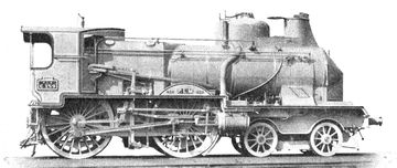 The wheel arrangement 4-4-0 designates a steam locomotive with a leading, two-axle bogie and two coupled axles. This design was the standard for almost all types of trains, especially in the USA for several decades of the 19th century. In different countries, this wheel arrangement is referred to as follows: