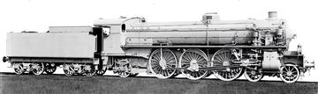 In order to obtain a more powerful express locomotive than those with the 4-6-0 wheel arrangement, the Reichseisenbahnen in Alsace-Lorraine had some of the first Pacifics built in Europe in 1908. However, in order to be able to use existing turntables and at the same time allow a large tender, the trailing axle had a very small distance from the third driving axle