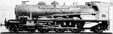 The boiler had a grate area of five square meters and narrowed in front of the firebox. It delivered 2,250 hp, making the type 10 one of the most powerful Pacific locomotives in Europe. Since the bogie hardly had to carry any weight from the smoke box, the load was kept within limits despite the four cylinders with simple steam expansion. Due to the special arrangement of the cylinders, the inner cylinders were accessible from above, which made maintenance easier. Although the cylinders were in one plane, the inner ones drove the first driving axle and the outer ones the second. The problem, however, was the weight of the large firebox, which made the load of the trailing axle too high. The Type 36 didn't have this problem as the weight was carried by the coupled axles