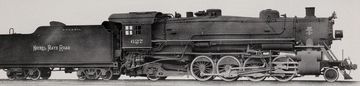 In the USA the Mikado became the main type for heavy freight service from the 1910s. Although they had a similar haulage capacity compared to modern Consolidations, they could attain higher speeds with similar trains. In the twenties they lost even faster freight services to the 2-8-4 and heavier trains to the 2-10-2 or articulated locomotives. But the Mikado was still sufficient for most other freight services, so production went on in large numbers. Altogether, US builders completed around 14,000 Mikados, of which 9,500 went to railroads in the own country. During World War II, they were called “MacArthurs” to avoid the Japanese name. In Canada, the Mikado was also used for passenger service in the Rocky Mountains.