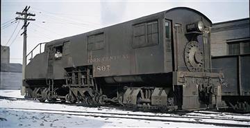 The third of the three most successful types of geared locomotives from the USA came from Charles Heisler and shared the central driveshaft with the Climax. Here, however, the cylinders were arranged in a V-shape directly behind the first bogie, similar to a V-engine. While the drive shaft on the Climax drove each individual wheel set directly, on the Heisler it only drove one axle per bogie directly. The second axle in each case was driven via coupling rods which were visible from the outside. The first Heisler locomotives were built in 1891 by the Dunkirk Engineering Company in the city of the same name in New York State. Larger numbers began to appear in 1894 at the Stearns Manufacturing Company in Erie, Pennsylvania, which renamed itself the Heisler Locomotive Works in 1907. A total of around 850 copies were made by 1941. The Heisler is often said to have been the fastest of the three types.