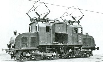 The locomotives had five axles of which all were driven. The middle one did not have wheel flanges and the outer ones had a lateral play of 20 mm. Only two continuous speeds of 25 and 50 km/h were realized by setting the traction motors in serial or parallel. Liquid resistors were used for all speeds between these two steps and had to be refilled with soda solution from time to time.