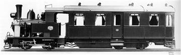 When steam railcars appeared in Great Britain in large numbers at the beginning of the century, James Manson of the G&SWR also followed the trend and had one steam railcar built in 1904. The vehicle consisted of a small, four-coupled tank locomotive and a conventional passenger carriage, which had only one bogie at the rear end. In theory the locomotive could have been detached from the carriage and used independently, however its water supplies were carried under the floor of the carriage.