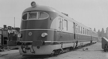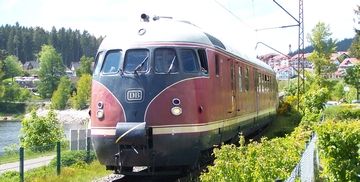Strictly speaking, the chassis was not a matter of individual axles, but of “curve-controlled individual wheel chassis” (KERF). The train was made up of two three-part halves, each with a two-axle car body in the middle. This was followed by another car body on both sides, which only stood on one axle and still achieved stable driving characteristics thanks to the steered wheels. In the entire train, six of the eight axles were equipped with a traction motor, which was powered by a total of four light diesel generators, each with 338 kW. Using a flywheel storage device, part of the braking energy could be recovered and reused for the next acceleration phase.
